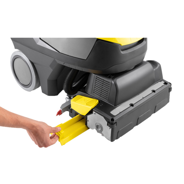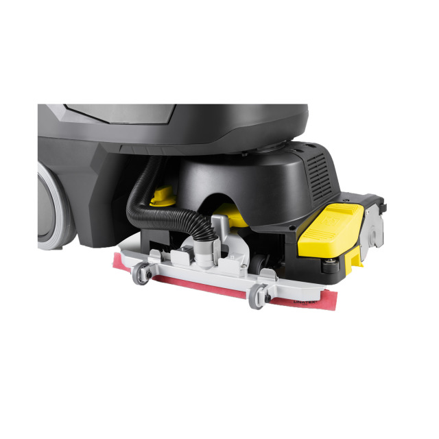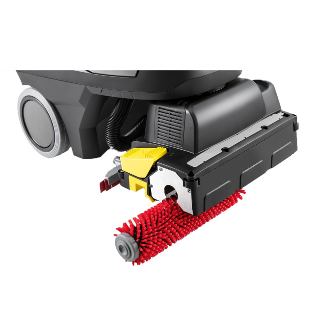 Akku-Scheuersaugmaschine KÄRCHER BR 35/12 C, reinigt sowohl vorwärts als auch rückwärts, Treppen und übergestellte Flächen. Drehbarer Walzenbürstenkopf mit einer Arbeitsbreite von 350 mm, theoretische Flächenleistung 1400 m²/h, Gangwendebreite 1050 mm, Frisch- und Schmutzwassertank, jeweils mit 12 l Volumen, Schalldruckpegel max. 65 dB(A), Akkulaufzeit 1,5 h
