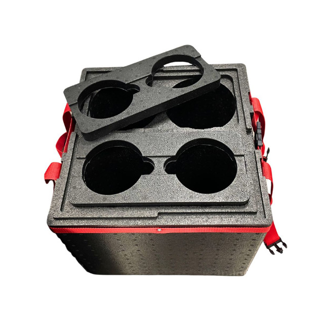 Transportbox SCHLAADT, zum Transport oder Lagerung von 4 Atemluftflaschen, aus expandiertem Polypropylen-Schaum (EPP), 2-teilig mit Tragegurtsystem, für ADR-konforme Sicherung ausgelegt, 4 Adapterplatten, Farbe schwarz
