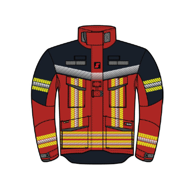 Überjacke S-GARD RESPONSER 2.0 ATC, DIN EN 469:2020-12 Kl. X1 Y2 Z2, DIN EN 1149-5:2018-11. S-GARD MOVE+ Konstruktion mit Golffalten im Rücken, verlängertes Rückenteil, ergonomisch vorgeformter Kragen mit Weitenregulierung, wasserdichter Frontreißverschluss. 2 aufgesetzte Seitentaschen mit Laschen für Karabiner, 1 Karabiner, 2 aufgesetzte höhenverstellbare Funkgerätetaschen, 1 Innentasche mit Kennzeichnungslasche, Barcode, QR-Code und RFID-Chip. Ärmelweite regulierbar, Strickbündchen mit ITC-System, 2 Revisionsöffnungen, Flauschband für Namenstreifen auf rechter und linker Brust
