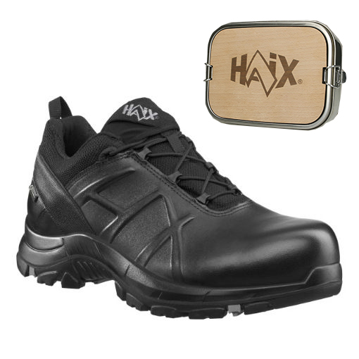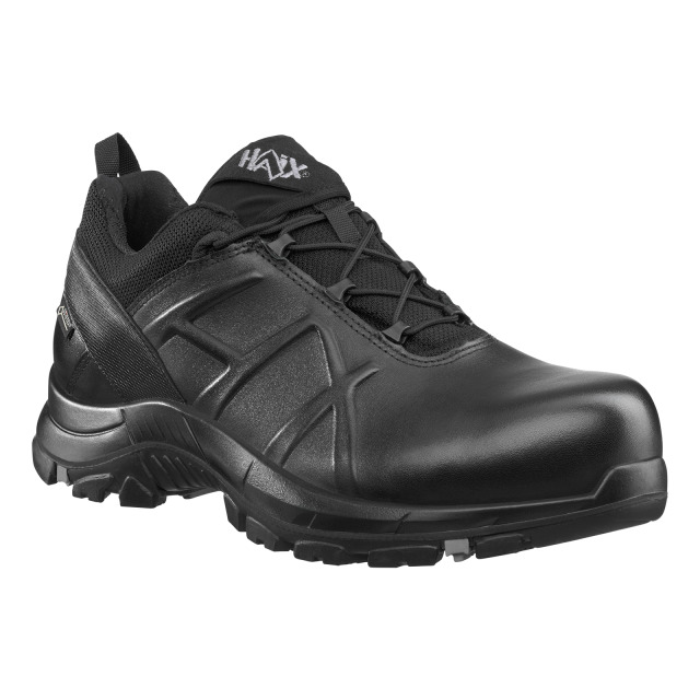 Schnürschuh HAIX BLACK EAGLE SAFETY 50.1 LOW, CE EN ISO 20345:2011 S3 HRO HI CI WR SRC. Leichter Sicherheitsschuh, Obermaterial Waterproofleder, hydrophobiert und atmungsaktiv, Innenfutter Gore-Tex Extended, Sun Reflect, Zehenschutzkappe aus faserverstärktem Kunststoff, durchtrittsichere Sohleneinlage, metallfrei, ESD, HAIX Vario Wide Fit System, HAIX Certified Orthopedic System, Gummi/PU-Sohle, antistatisch, Schafthöhe 7,5 cm, Farbe schwarz/schwarz