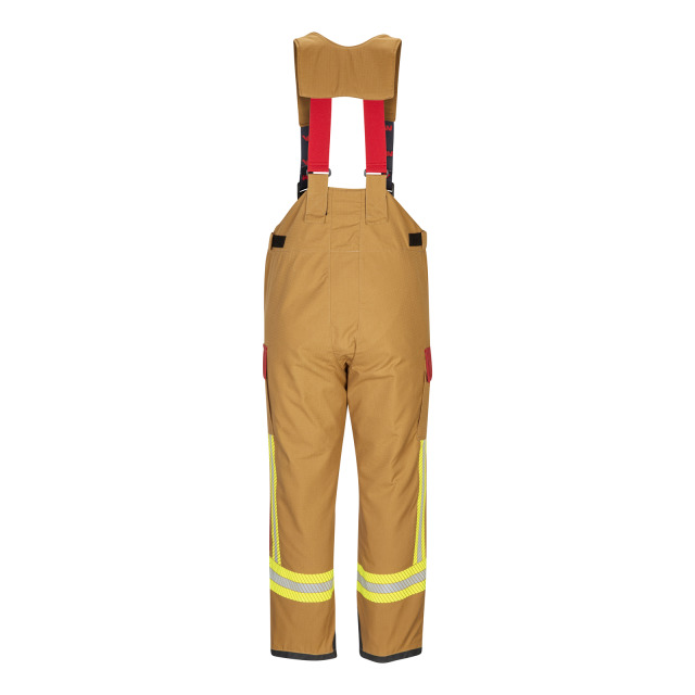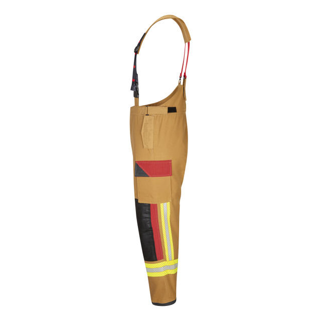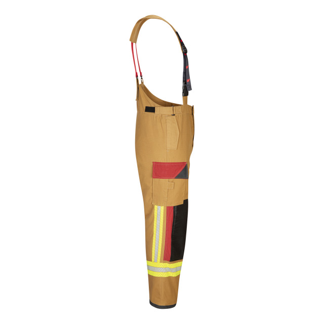 Überhose WATEX X-Pro, DIN EN 469:2020-12 X2 Y2 Z2. Ergonomische Schnittführung mit verlängerter Hinterhose, abnehmbare elastische Hosenträger mit Klettbefestigung an der Hinterhose und gepolstertem Schulterbereich.2 eingesetzte Seitentaschen mit Patte und Klettverschluss, 2 aufgesetzte Oberschenkeltaschen mit abgeschrägter Patte und Klettverschluss, rechte Tasche zusätzlich mit Messertasche, Hosenschlitz mit Klettverschluss, Bundweitenverstellung, Saugsperre und Abriebschutz am Hosensaum, ergonomisch geformte Knieverstärkung aus Para-Aramid mit Silikonbeschichtung, Reparatureingriff mit Reißverschluss Obermaterial Euramid Ripstop, Nässesperre PTFE Membrane auf Spunlace Lochfleece, Isolationsfutter Topaz FX 50% Aramid/50% Viskose, Innenfutter 65% Aramid/35% Viskose Farbe sand/dunkelblau, segmentierte Reflexbestreifung nach HuPF 07/2020 Lieferbare Größen 42/44-62/64, 42/44K-62/64K, 42/44L-62/64L, PSA-Kategorie III