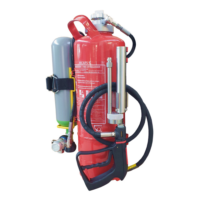 Hochleistungslöschgerät HNE HiCAFSS 9 Stahl. Tragbares Hochdrucklöschgerät mit hoher Flexibilität zum Erstangriff bei Wohnungs-, Klein- und Entstehungsbränden sowie für Nachlöscharbeiten in den Brandklassen A und B. Konstanter Betriebsdruck von 29 bar während des gesamten Löschvorgangs, homogene Blasenstruktur für hohe Löscheffizienz und Minimierung von Wasserschädenn, effizienter CAFS-Schaum, bietet durch Luftanreicherung bessere Hafteigenschaften an Wänden oder sogar an Decken. Zugelassen für elektrische Anlagen bis 1000 V, Mindestabstand 2 m. Löschmittelstrahl mittels Löschpistole ohne Rückschlag stufenlos dosierbar, Tragegriff