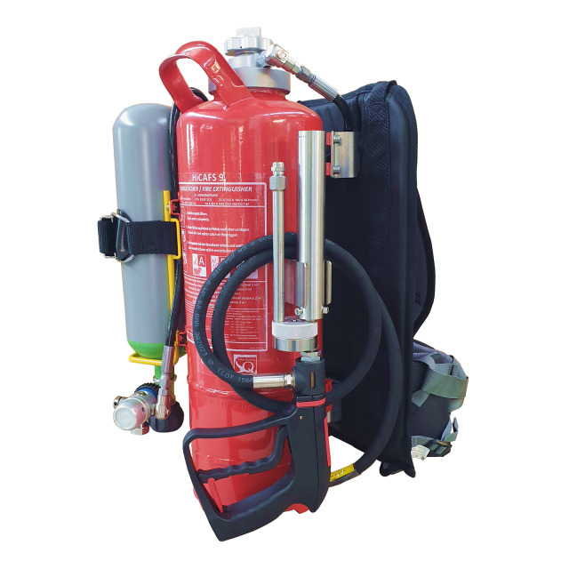 Lieferung einschließlich Rückentrage, 1,5 m Löschschlauch mit HiCAFS Jet-Pistole, Erstfüllung mit Löschmittelkonzentrat