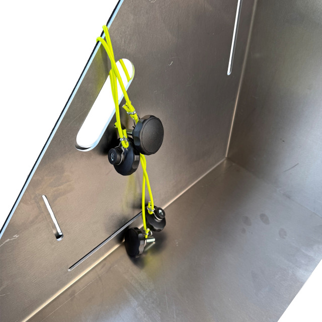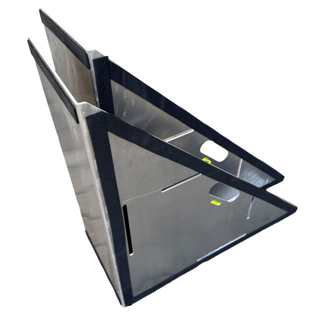 Hochwasserbarriere PHÖNIX, Abschluss, Satz aus 2 Stück. Freistehender mobiler Hochwasserschutz zum Stoppen und/oder Ableiten von Wasser, sehr leicht und sehr schnell einsetzbar, die Elemente werden ohne Werkzeug ineinander eingerastet. Selbstverankernd, Beschwerung allein durch das Gewicht des gestauten Wassers. Es sind keine baulichen Vorabmaßnahmen erforderlich, Abschlussstücke sind miteinander verschraubbar. Kompakte Lagerung, wiederverwendbar. Aus Aluminium-Magnesium-Legierung, Für Stauhöhen 500 mm und 600 mm, Höhe 750 mm