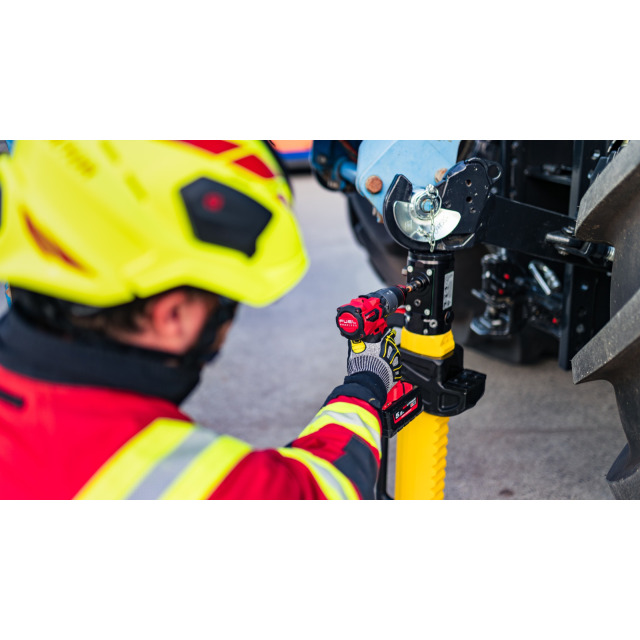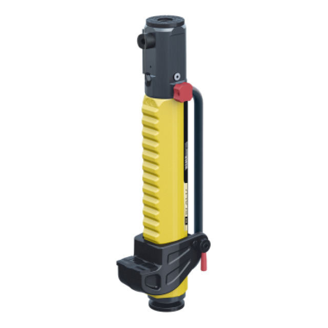 Hydraulischer Heber WEBER Büffel B10 ALU, Antrieb über separaten Akkuschrauber mit einem Drehmoment von mind. 50 Nm, 6-Kant Aufnahme 12 mm, Ausfahrzeit 45 s bei 2100 U/min. Hubkraft 105 kN, Hub 350 mm, Einbauhöhe Kopf 735 mm, Einbauhöhe Kopf 84-490 mm (14 Raststellungen à 29 mm). Geringes Gewicht durch optimierten Aluminiumkörper, ergonomische Gewichtsverteilung mit großem ausbalanciertem Tragegriff, austauschbare Auflageplatte aus Stahl an der Klaue. (LxBxH) 735x156x242 mm, ca. 22,9 kg