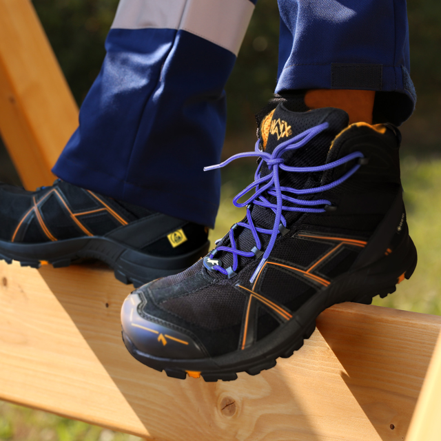 Schnürschuh Jugendfeuerwehr YOUNG FIRESTAR JF Safety HAIX, CE EN ISO 20345:2011 S3 HRO HI CI WR SRC. Leichter Sicherheitsschuh, antistatisch, elektrostatisch ableitend (ESD), kälteisoliert, HAIX „Composite Schuhkappe“. Gummi/PU-Profilsohle, durchtritthemmend, flexibel, metallfrei, rutschsicher, abriebfest, öl- und benzinbeständig, nicht kreidend, PU-Dämpfungskeil. Einlage dämpfend und feuchtigkeitsableitend, separate Fersenschale, „AIRFLOW“-Kanäle, „Perfect-Fit“-Markierung. HAIX „Climate System“, GORE-TEX-Extended-Membrane, hoch atmungsaktiv und wasserdicht. HAIX „Vario Wide Fit System“, Lieferung einschließlich Einlagesohle mittel (rot).