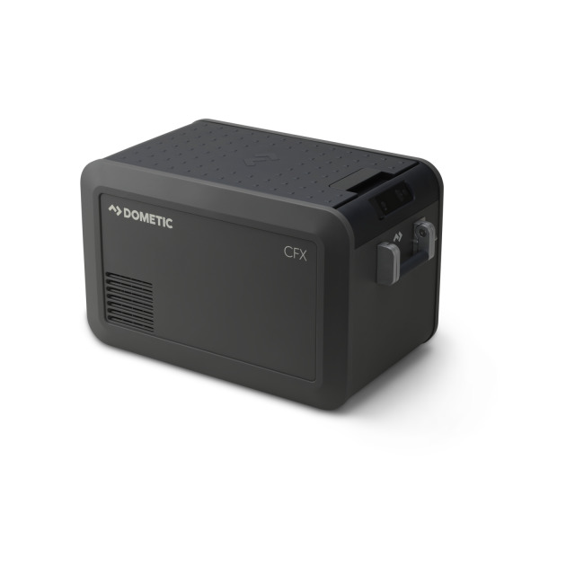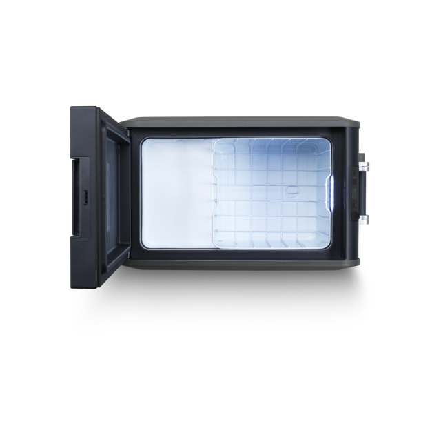 Kompressor-Kühlbox DOMETIC CFX5 25, tragbar, Volumen 25 l, für Netzbetrieb geeignet, Betriebszustandsanzeige über TFT-LCD-Display, LED Innenbeleuchtung, USB-Anschluss 5V/2A, Bluetooth/WiFi-fähig. Temperatursteuerung und Funktionsüberwachung mittels App oder am Gerät, Einhängekorb, 2 Anschlussleitungen für Gleich- und Wechselstrom, Stromaufnahmemöglichkeit durch Doppelbatteriesysteme, dreistufiges Batterieschutzsystem mit automatischer Abschaltung, optimierte VMSO3.5 Kompressorkühltechnik, Vakuumisolation, stabile Tragegriffe aus Aluminiumlegierung, Energieeffizienzklasse B, Kältemittel R600a, Maße (LxBxH) 569x420x342 mm,