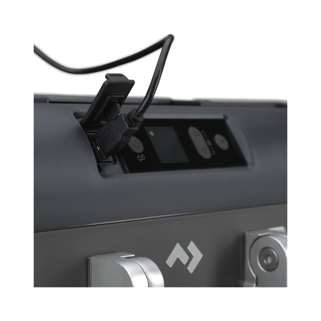 Kompressor-Kühlbox DOMETIC CFX5 55IM, tragbar, Volumen 53 l, mit Eiswürfelfunktion, für Netzbetrieb geeignet, Betriebszustandsanzeige über TFT-LCD-Display, LED Innenbeleuchtung, USB-Anschluss 5V/2A, Bluetooth/WiFi-fähig. Temperatursteuerung und Funktionsüberwachung mittels App oder am Gerät, Einhängekorb, 2 Anschlussleitungen für Gleich- und Wechselstrom, Stromaufnahmemöglichkeit durch Doppelbatteriesysteme, dreistufiges Batterieschutzsystem mit automatischer Abschaltung, optimierte VMSO3.5 Kompressorkühltechnik, Vakuumisolation, stabile Tragegriffe aus Aluminiumlegierung, Energieeffizienzklasse B, Kältemittel R600a, Maße (LxBxH) 720x480x455 mm,