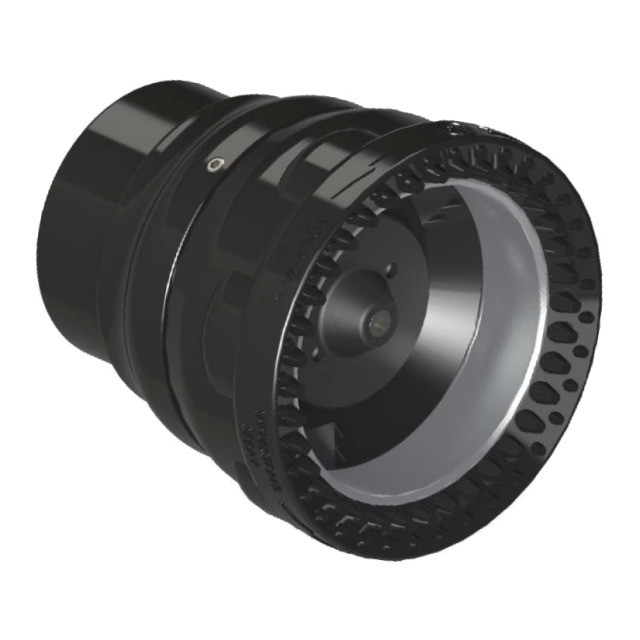 Mehrzweckdüse ALCO MZV 5000, elektrisch, stufenlos von Vollstrahl auf Sprühstrahl einstellbar. Durchflussmenge 1600/2500/3300/4000/5000 l/min bei 8 bar, aus Aluminiumlegierung, schwarz eloxiert, (LxBxH) 281x263x191 mm, ca 4,8 kg