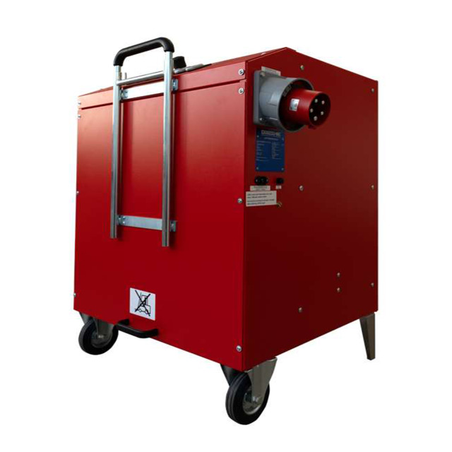 Anschluss über 125 A CEE-Stecker, Leistung in Stufen 3 x 3 kW, 2 x 12 kW, 2 x 24 kW schaltbar, Max. Leistung 81 kW, Lastabwurf, Gehäuse aus Aluminium, Farbe rot, 2 Standfüße, 2 Gummirollen, ausziehbarer Trolleygriff, IP20, (BxHxT) 830x1000x690 mm, ca. 62 kg
