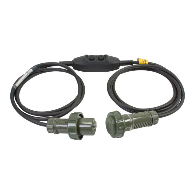 Gummileitung H07RN-F 3G1,5 mit Schalter IP55, eine Seite 1,5 m Zuleitung mit Schuko-Stecker IP68, andere Seite 0,5 m Zuleitung mit Schuko-Kupplung IP68, 230 V/16 A, ca. 0,8 kg