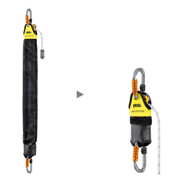 Rettungkit PETZL JAG RESCUE 120 m. Einsatzbereites reversibles Rettungskit zum Lösen und Abseilen einer verletzten Person. Lösen mit Hilfe des Flaschenzugkits mit 4:1-Übersetzung und Laufrollen mit hohem Wirkungsgrad, Evakuierung mit dem Abseilgerät, dessen Griff speziell zum Abseilen einer verletzten Person konzipiert ist. Wenn die anwendende Person zu stark am Griff zieht, wird eine Anti-Panik-Funktion ausgelöst und die Abseilfahrt wird automatisch gebremst und gestoppt. Flexible Hülle verhindert ein Verwickeln des Seils, das Seil ist im geschlossenen Bremselement des Abseilgeräts installiert, um eine bessere Kontrolle der Abseilfahrt zu ermöglichen und in jeder Situation über eine Seilumlenkung zu verfügen, max. Gebrauchslast 250 kg. Satzbestandteile: JAG SYSTEM-Flaschenzugkit, aufschraubbare RING OPEN-Öse, Abseilgerät I’D EVAC mit integriertem Bremselement, Anschlagmittel CONNEXION FIXE 150 cm, Seilsack BUCKET, 120 m AXIS-Seil 11 mm mit zwei vernähten Endverbindungen, Gesamtgewicht 11,5 kg