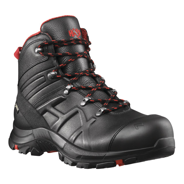 Schnürschuh HAIX BLACK EAGLE SAFETY 54 MID, CE EN ISO 20345:2011 S3 HRO HI CI WR SRC. Leichter Funktionsschuh, Obermaterial Waterproofleder, hydrophobiert und atmungsaktiv, Innenfutter Gore-Tex Extended, Sun Reflect, Zehenschutzkappe, durchtritthemmende Sohleneinlage, ESD, HAIX Vario Wide Fit System, HAIX Certified Orthopedic System, Gummi/PU-Sohle, rutschfest und antistatisch, Schafthöhe 14,5 cm, Farbe schwarz/schwarz