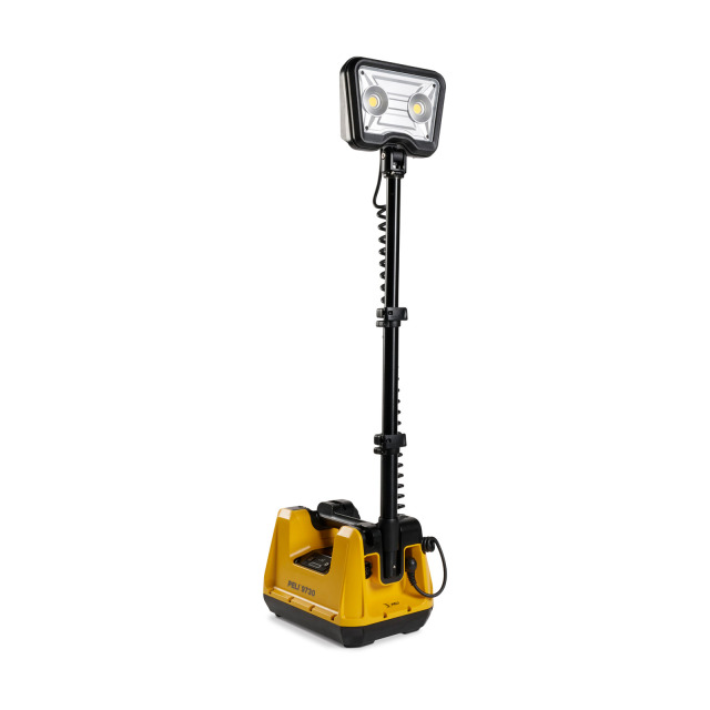 Scheinwerfer PELI 9730 RALS, 1 ausziehbarer, abnehmbarer Scheinwerferkopf, variable Lichtmodi: Hoch, Mittel und Niedrig, Lichtstrom max. 4800 Lumen, Rückseitiges Bodenlicht erhöht die Sicherheit. Stromversorgung durch eingebauten Akku, Betriebsdauer 3,5/13 h bei voller/reduzierter Lichtleistung, Ladeelektronik, zur Schonung des Akkus kann dieser bei laufendem Betrieb nicht gleichzeitig geladen werden, Echtzeit-Batterieanzeige, automatische Abschaltung bei leerem Akku. Gehäuse aus Polypropylen, Schutzart IP X4, Farbe gelb, System zum Transport zusammenklappbar