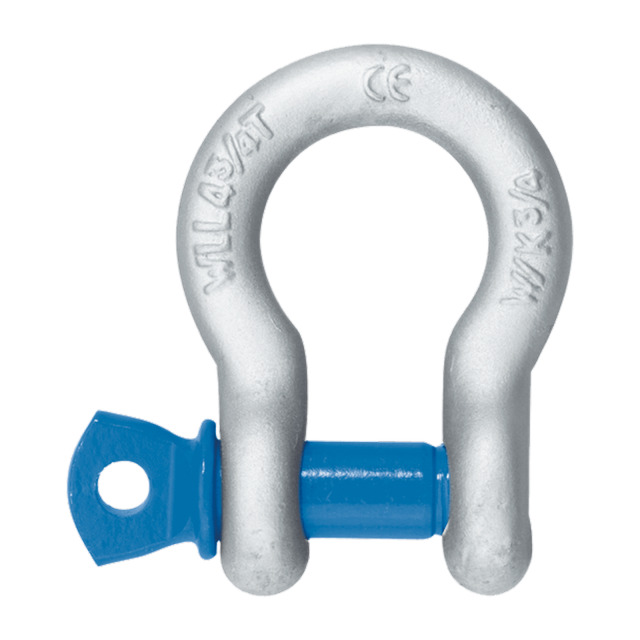Schäkel 7/8'', geschweift, Form A, Typ W, DIN EN 13889:2009-02. Aus verzinktem Stahl, hochfest. Tragfähigkeit (WLL): 63,8 kN (6,5 t), ca. 1,6 kg