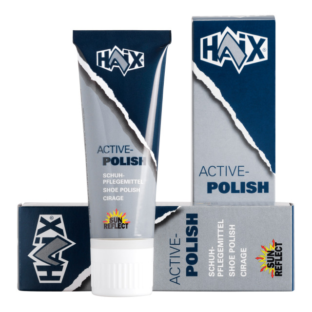 Schuhpflegemittel HAIX SUN REFLECT zum intensiven Schutz vor Nässe und tiefgreifenden Verschmutzungen, ohne die Wirkungsweise der Nässesperre negativ zu beeinflussen.