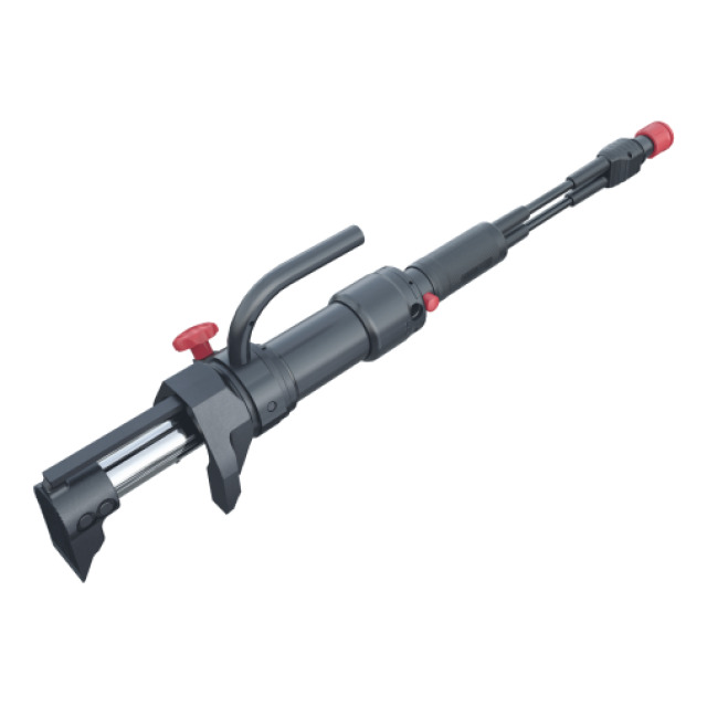 Türöffner WEBER DO 140 MK2, Klauensystem zum Öffnen von Fahrstuhltüren und nach außenöffnenden Türen, starker Halt im Türspalt, Öffnen von Türen auch mit komplexen und mehrfachen Schließmechanismen. 360° dreh- und klappbarer Haltegriff, zentrales Bedienfeld, ohne Umgreifen mit Daumen und Zeigefinger zu erreichen, Hauptarbeitsrichtung eindeutig identifizierbar. Faserverstärktes Kunststoffgehäuse, Anfangslänge 441 mm, Endlänge 581 mm, Hub 140 mm, Hubkraft 101 kN, (LxBxH) 441x165x209 mm, ca. 9,3 kg