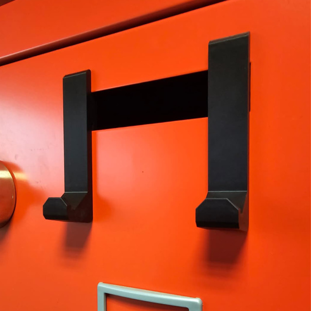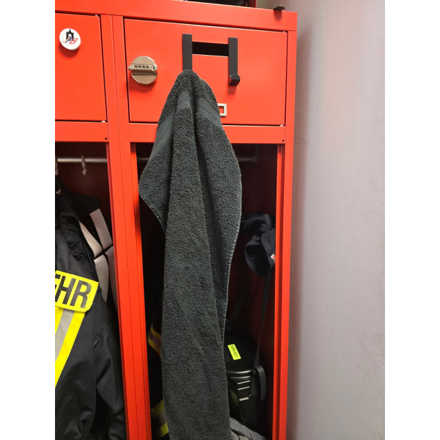 Türhaken für Spind, zum Einhängen an Einwurföffnung von mindestens 2,4 cm, Kunststoff, Farbe schwarz