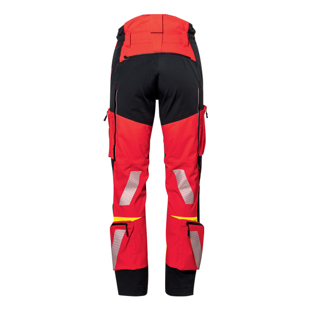 Obermaterial 100% Polyester, PU-Membrane, Futter 100% Polyester, Farbe rot/gelb, segmentierte Reflexbestreifung im hinteren Beinbereich